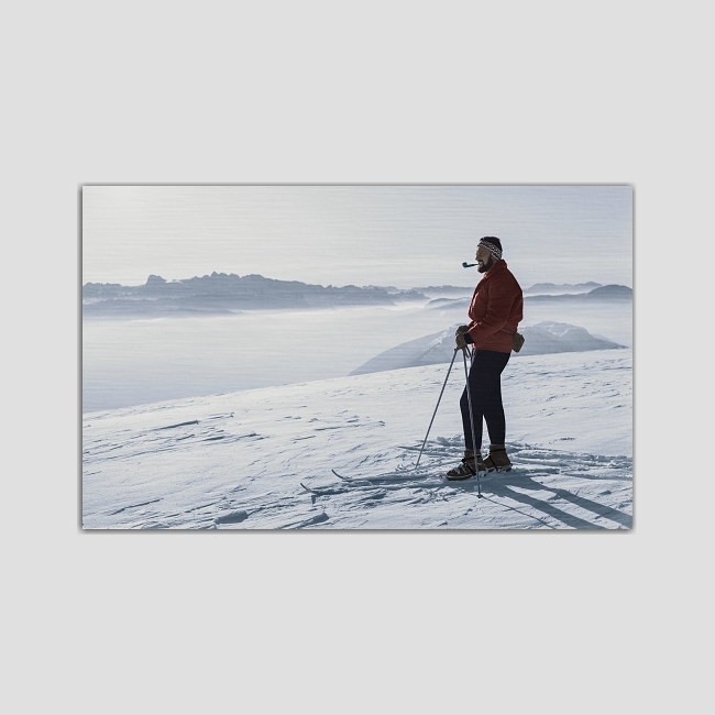 Jindra Hartman v Alpách na přelomu 60. a 70. let minulého století. Fotografie ručně kolorovaná v Adobe Photoshop.